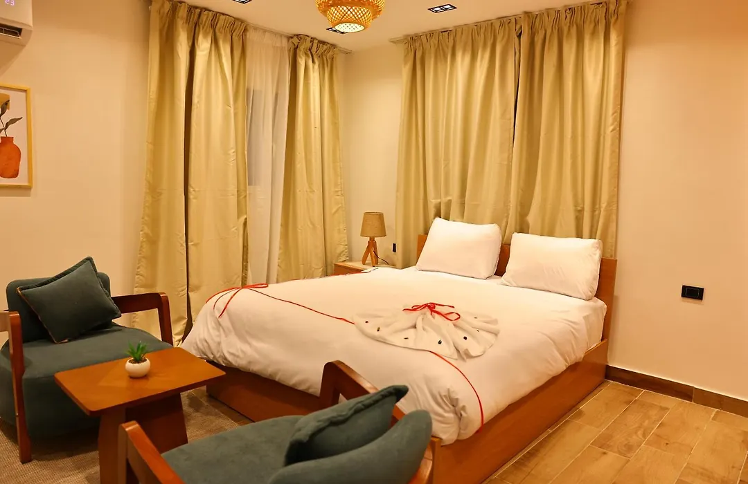 يحتوي مكان الإقامة في القاهرة على 13 غرفة مجهزة بتلفزيون بشاشة مسطحة مع قنوات فضائية والتلفزيون متعدد القنوات بالإضافة إلى معدات صنع القهوة والشاي. مكواة ولوح كيّ ولوازم كيّ الملابس ونظام التحكم المناخي متاحة لراحة الضيوف. تتوفّر أيضًا شطافة بيديه والمرحاض المنفصل والدوش بالإضافة إلى مرافق مثل مجفف الشعر وقبعة الدوش.